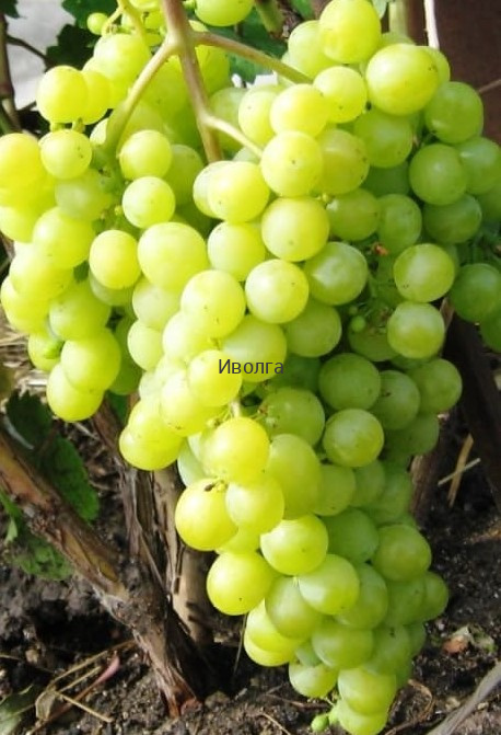 Грозди крупные (весом 300—600 г), рыхлые, конические, крылатые. Ягоды средние, слегка овальные, массой до 4 г, янтарного цвета, приятного, гармоничного вкуса, без муската. Содержание сахара достигает 19—21%.